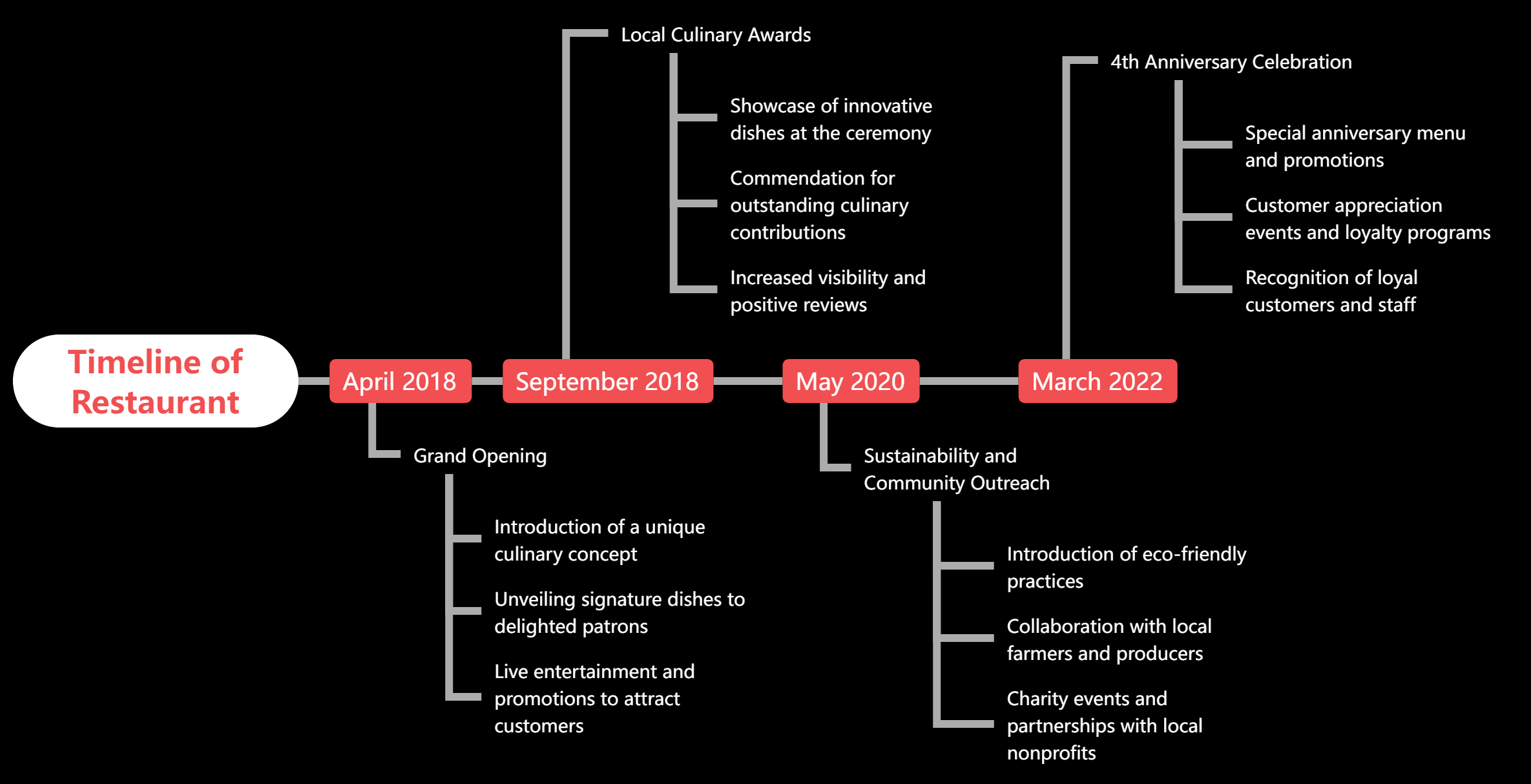 By strategically planning and executing these milestones, the restaurant has been able to establish a strong brand identity, differentiate its offerings, gain recognition, and engage with its local community. This comprehensive approach, as illustrated in the timeline, has likely contributed to the restaurant’s growth and long-term sustainability.