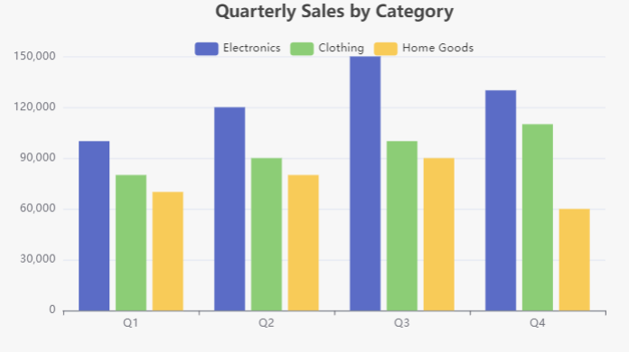 • Grouped Column Chart: Best for comparing how each product category performed across different quarters, highlighting trends and variations in sales.